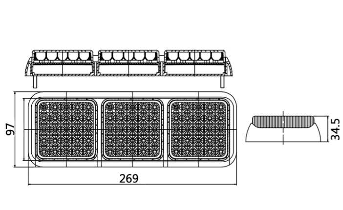 - 10-30V LED triple modular lamp with fog function and plastic base