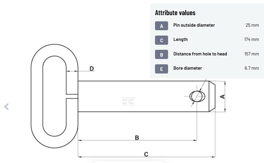 CAT 2 DRAW BAR LINKAGE PIN WITH HANDLE 25x157mm - Z525157HKR
